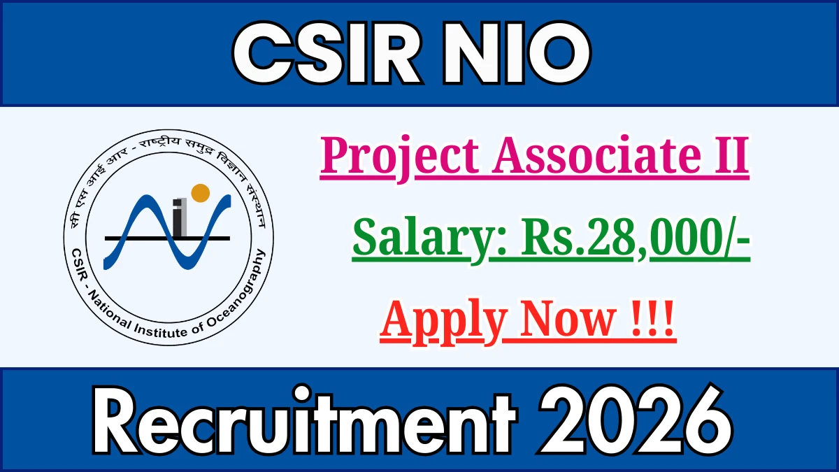 CSIR National Institute of Oceanography (CSIR NIO) has released an official notification for the recruitment of 01 Project Associate II Posts. Interested and eligible candidates can apply Online through the official CSIR NIO website. The last date to submit the application form is 25-01-2026. In this article, you’ll find the CSIR NIO Project Associate II Posts recruitment details, including eligibility criteria, age limit, salary structure, selection process, application steps, and direct links to the official notification and Online application form.