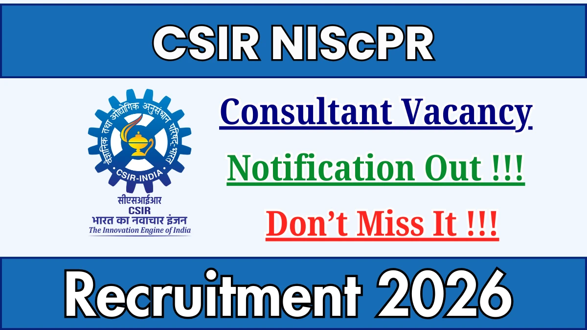CSIR National Institute of Science Communication and Policy Research (CSIR NIScPR) has released an official notification for the recruitment of 01 Consultant Posts. Interested and eligible candidates can apply Offline through the official CSIR NIScPR website. The last date to submit the application form is 16-02-2026. In this article, you’ll find the CSIR NIScPR Consultant Posts recruitment details, including eligibility criteria, age limit, salary structure, selection process, application steps, and direct links to the official notification and Offline application form.