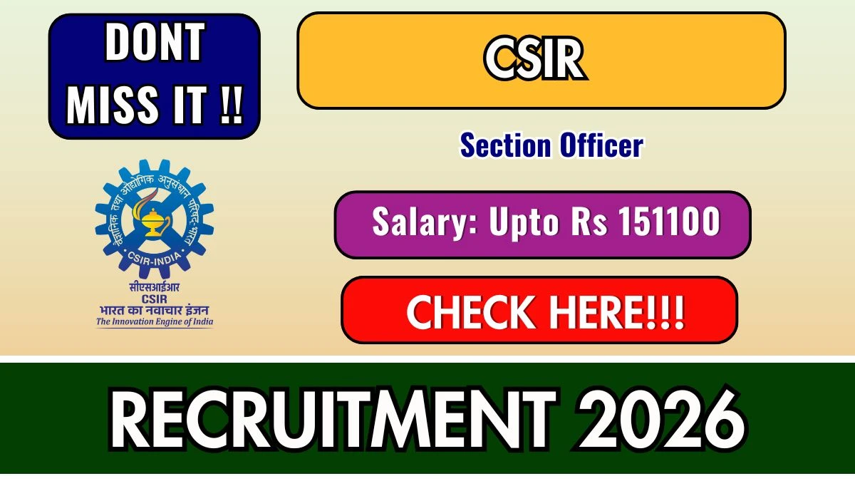 Council of Scientific and Industrial Research (CSIR) has released an official notification for the recruitment of 08 Section Officer Posts. Interested and eligible candidates can apply Online through the official CSIR website. The last date to submit the application form is 04-02-2026. In this article, you’ll find the CSIR Section Officer Posts recruitment details, including eligibility criteria, age limit, salary structure, selection process, application steps, and direct links to the official notification and Online application form.