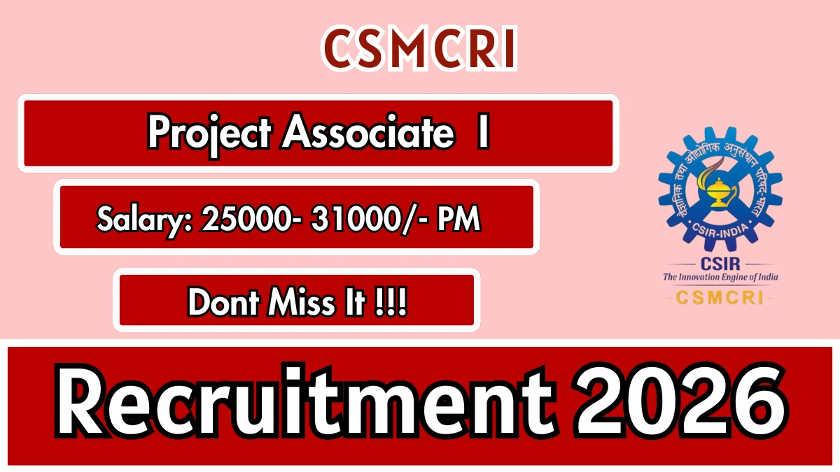 Central Salt and Marine Chemicals Research Institute (CSMCRI) Project Associate - I Notification 2026 has been released on the official website. A total of 1 vacancy has been announced through the CSMCRI Project Associate - I Recruitment 2026.