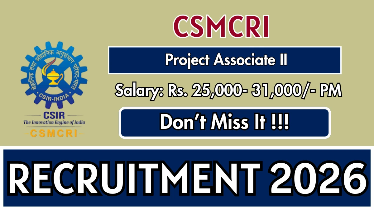 Central Salt and Marine Chemicals Research Institute (CSMCRI) Recruitment 2026 for 02 posts of Project Associate II. Candidates with M.Sc Can attend the walkin. The Walk-in on 06-03-2026. For detailed information please visit CSMCRI official website,.csmcri.res.in.