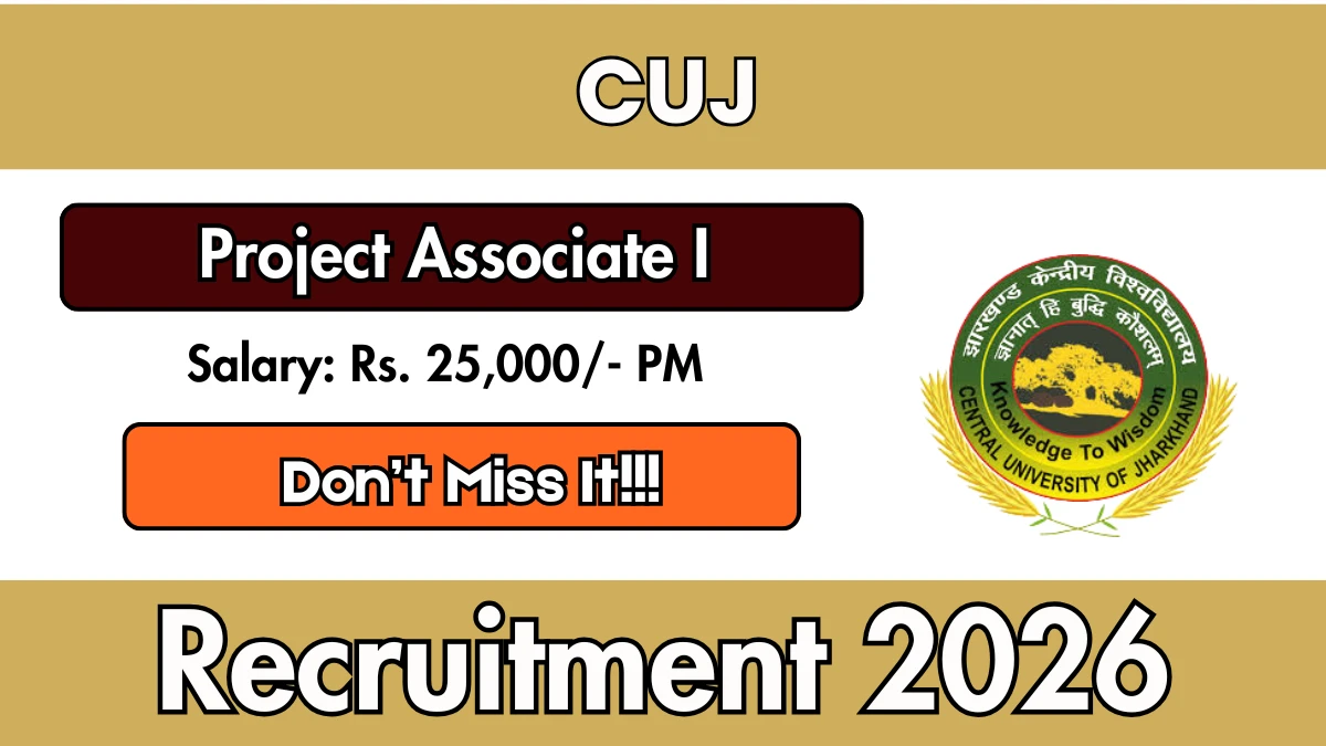 Central University of Jharkhand (CUJ) has officially released a notification for the recruitment of 1 Project Associate I Posts. This recruitment drive offers a great opportunity for candidates looking for government jobs. Interested and eligible candidates can apply by sending their resume and documents to the official email address.