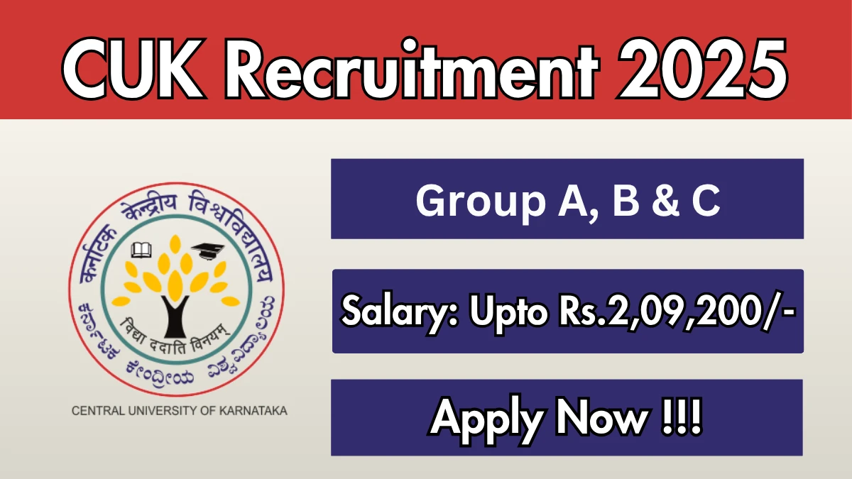 Central University of Karnataka (CUK) has released an official notification for the recruitment of 25 Group A, B & C Posts. Interested and eligible candidates can apply Online through the official CUK website. The last date to submit the application form is 30-10-2025. In this article, you’ll find the CUK Group A, B & C Posts recruitment details, including eligibility criteria, age limit, salary structure, selection process, application steps, and direct links to the official notification and Online application form.