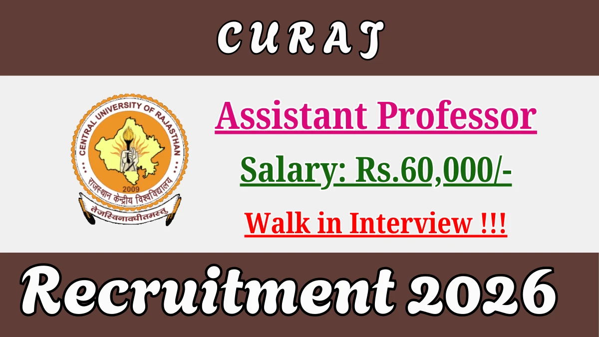 Central University of Rajasthan (CURAJ) Recruitment 2026 for 02 posts of Assistant Professor. Candidates with Any Bachelors Degree, Any Masters Degree, CA, ICWA, M.Com, MBA/PGDM Can attend the walkin. The Walk-in starts from 17-02-2026, and ends on 18-02-2026. For detailed information please visit CURAJ official website, https://www.curaj.ac.in.