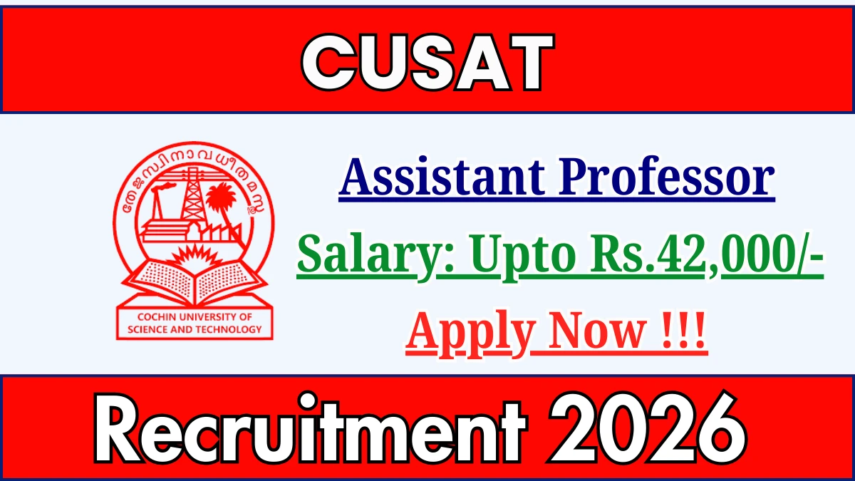 Cochin University of Science and Technology (CUSAT) has released an official notification for the recruitment of 01 Assistant Professor Posts. Interested and eligible candidates can apply Online through the official CUSAT website. The last date to submit the application form is 25-02-2026. In this article, you’ll find the CUSAT Assistant Professor Posts recruitment details, including eligibility criteria, age limit, salary structure, selection process, application steps, and direct links to the official notification and Online application form.