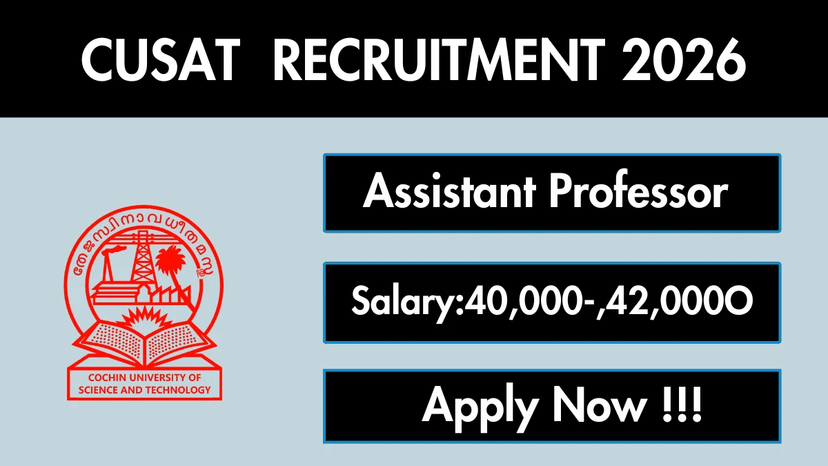 Cochin University of Science and Technology (CUSAT) has released an official notification for the recruitment of 02 Assistant Professor Posts. Interested and eligible candidates can apply Online through the official CUSAT website. The last date to submit the application form is 20-02-2026. In this article, you’ll find the CUSAT Assistant Professor Posts recruitment details, including eligibility criteria, age limit, salary structure, selection process, application steps, and direct links to the official notification and Online application form.