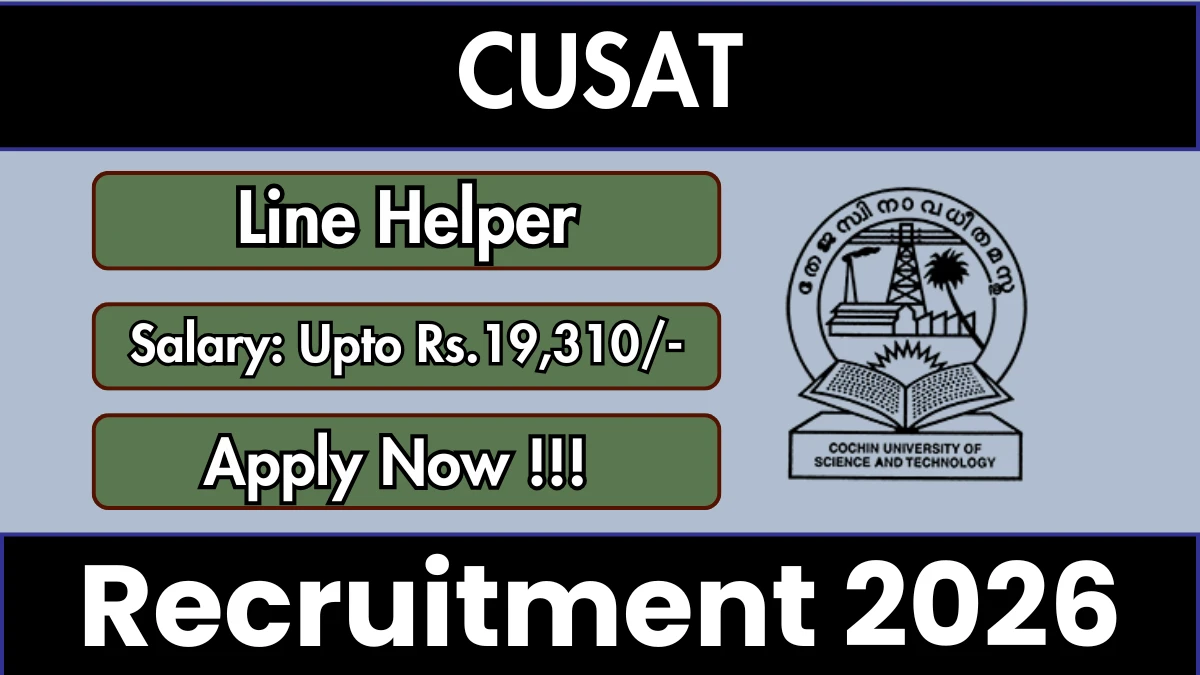 Cochin University of Science and Technology (CUSAT) has released an official notification for the recruitment of 06 Line Helper Posts. Interested and eligible candidates can apply Online through the official CUSAT website. The last date to submit the application form is 20-01-2026. In this article, you’ll find the CUSAT Line Helper Posts recruitment details, including eligibility criteria, age limit, salary structure, selection process, application steps, and direct links to the official notification and Online application form.