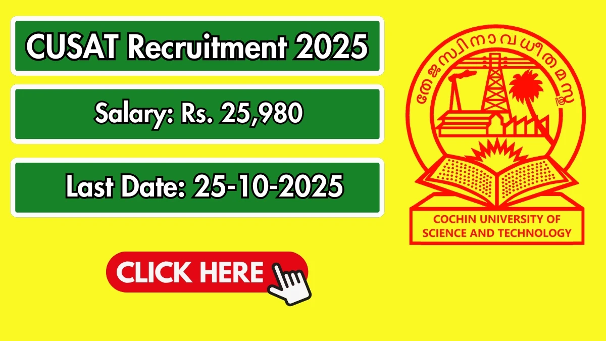 Cochin University of Science and Technology (CUSAT) has released an official notification for the recruitment of 01 Technician Grade II Posts. Interested and eligible candidates can apply Online through the official CUSAT website. The last date to submit the application form is 25-10-2025. In this article, you’ll find the CUSAT Technician Grade II Posts recruitment details, including eligibility criteria, age limit, salary structure, selection process, application steps, and direct links to the official notification and Online application form.