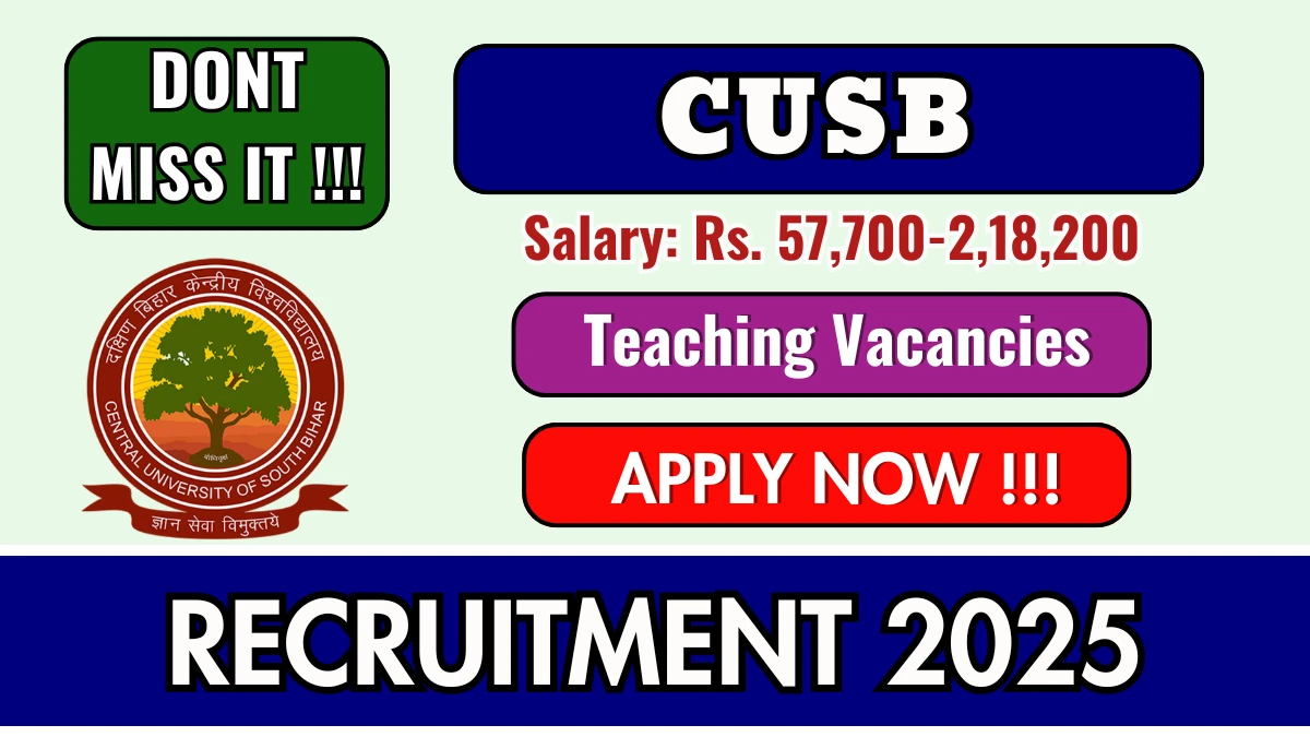 This CUSB Faculty Recruitment 2025 notification offers prestigious teaching opportunities under UGC norms with attractive Salary as per the 7th CPC. Aspirants looking for latest central university jobs can apply through the Official Website after checking Eligibility, application fee, and selection process details. Applications close on 15/01/2026, so eligible applicants should not wait till the last day. This article covers latest updates, notification highlights, and a step-by-step guide to help candidates complete the online application smoothly.