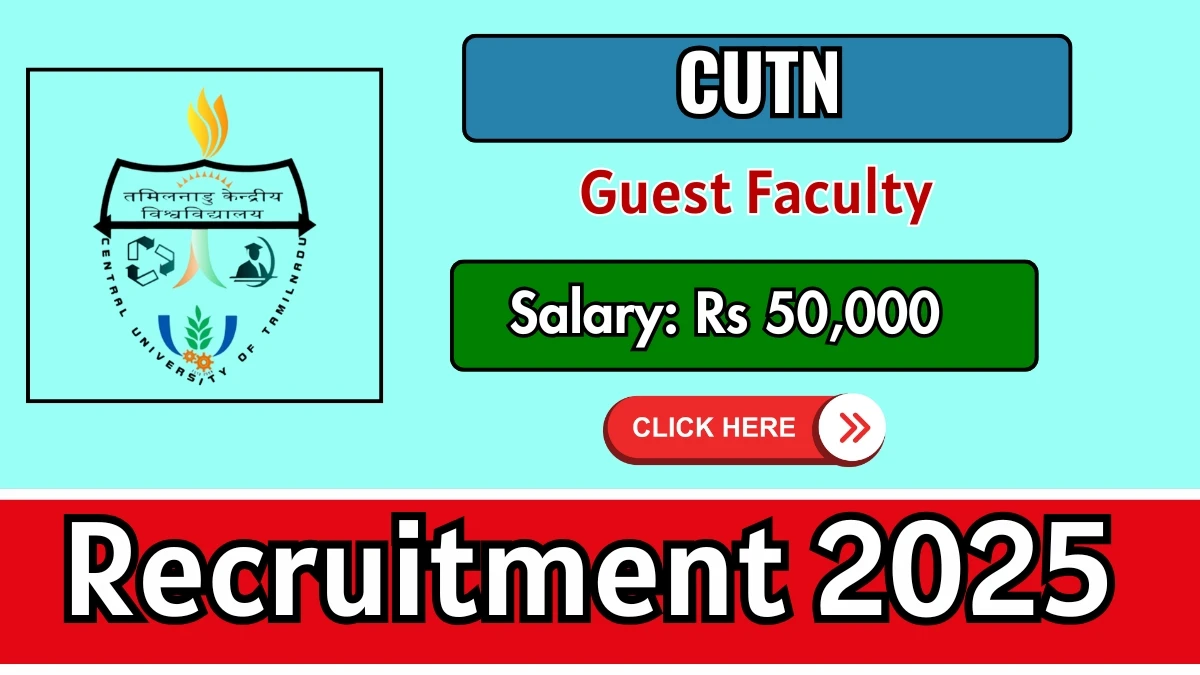Central University of Tamil Nadu (CUTN) has released an official notification for the recruitment of 01 Guest Faculty Posts. Interested and eligible candidates can apply Offline through the official CUTN website. The last date to submit the application form is 14-10-2025. In this article, you’ll find the CUTN Guest Faculty Posts recruitment details, including eligibility criteria, age limit, salary structure, selection process, application steps, and direct links to the official notification and Offline application form.