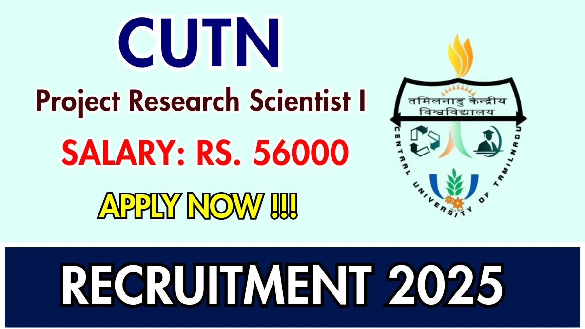 Central University of Tamil Nadu (CUTN) has released an official notification for the recruitment of Project Research Scientist I Posts. Interested and eligible candidates can apply Online through the official CUTN website. The last date to submit the application form is 16-10-2025. In this article, you’ll find the CUTN Project Research Scientist I Posts recruitment details, including eligibility criteria, age limit, salary structure, selection process, application steps, and direct links to the official notification and Online application form.