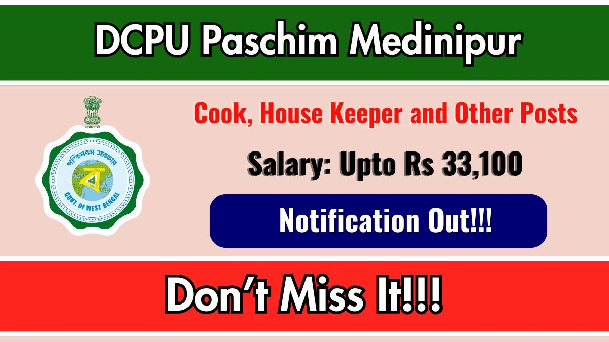 DCPU Paschim Medinipur Recruitment 2026 - Apply Online for 26 Cook, House Keeper and Other Posts