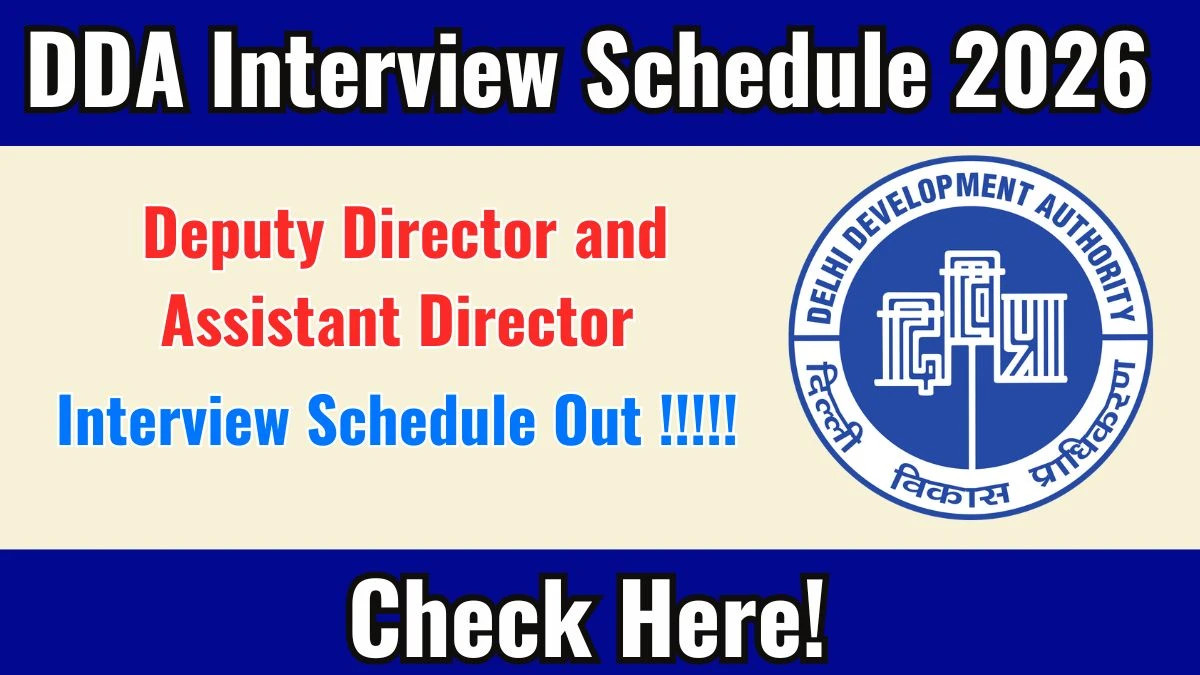 DDA Deputy Director and Assistant Director Posts Interview Schedule 2026: Delhi Development Authority (DDA) has officially released the interview schedule for Deputy Director and Assistant Director posts under Direct Recruitment 2025. Candidates who cleared the written examination can check their interview date, venue, and timings on the official website dda.gov.in. Interviews will be held offline in Delhi/New Delhi.