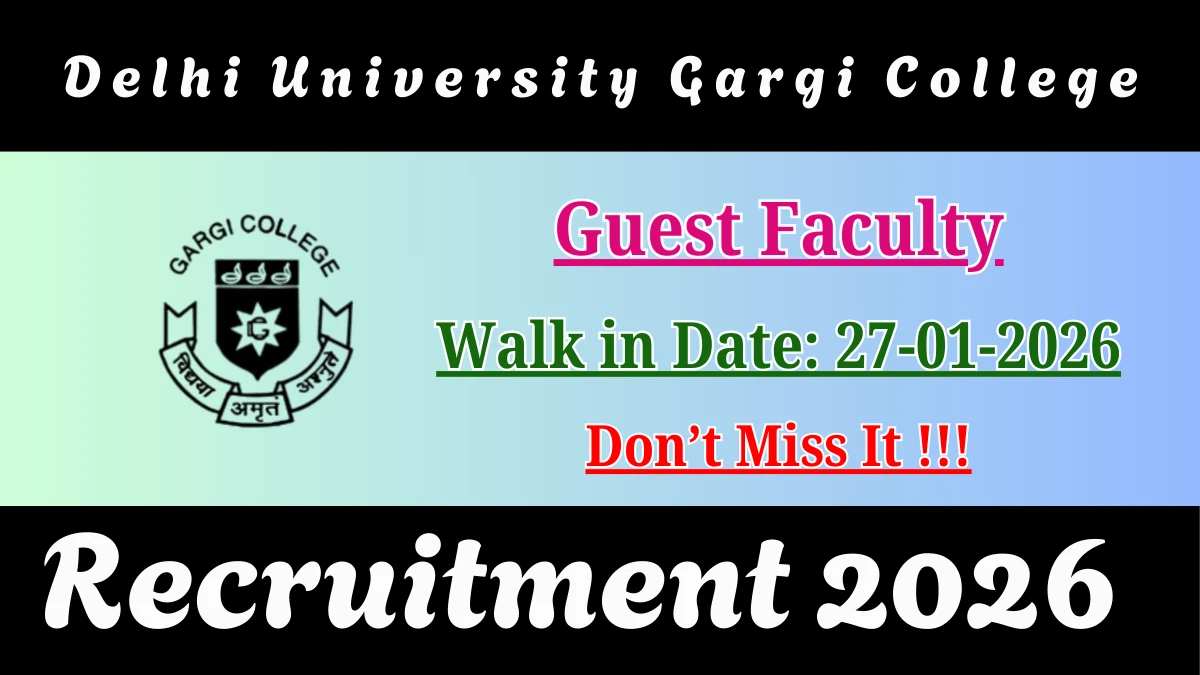 Delhi University Gargi College Recruitment 2026 for 02 posts of Guest Faculty. Candidates Can attend the walkin. The Walk-in on 27-01-2026. For detailed information please visit Delhi University Gargi College official website, https://www.du.ac.in/.