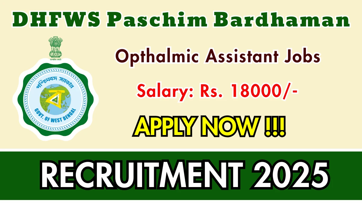 The District Health Family welfare Samiti Paschim Bardhaman (DHFWS Paschim Bardhaman) Recruitment 2025 for 01 posts of Opthalmic Assistant. Candidates with 12TH Can Apply Online. The online application opens on 21-12-2025, and closes on 07-01-2026. The candidate shall apply online through DHFWS Paschim Bardhaman website, paschimbardhaman.gov.in.