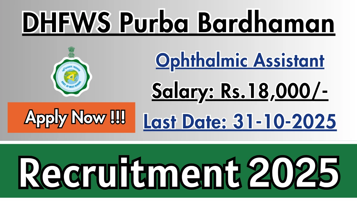 District Health and Family Welfare Samity Purba Bardhaman (DHFWS Purba Bardhaman) has released an official notification for the recruitment of 01 Ophthalmic Assistant Posts. Interested and eligible candidates can apply Online through the official DHFWS Purba Bardhaman website. The last date to submit the application form is 31-10-2025. In this article, you’ll find the DHFWS Purba Bardhaman Ophthalmic Assistant Posts recruitment details, including eligibility criteria, age limit, salary structure, selection process, application steps, and direct links to the official notification and Online application form.
