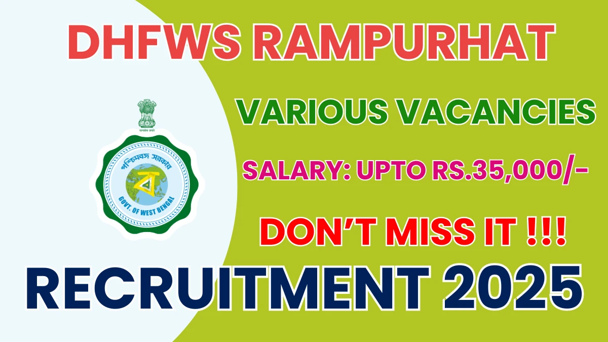 DHFWS Rampurhat Block Epidemiologist, Laboratory Technician and More Recruitment 2025 Overview