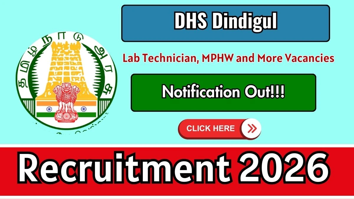 District Health Society Dindigul (DHS Dindigul) has released an official notification for the recruitment of 21 Lab Technician, MPHW and More Posts. Interested and eligible candidates can apply Offline through the official DHS Dindigul website. The last date to submit the application form is 26-02-2026. In this article, you’ll find the DHS Dindigul Lab Technician, MPHW and More Posts recruitment details, including eligibility criteria, age limit, salary structure, selection process, application steps, and direct links to the official notification and Offline application form.