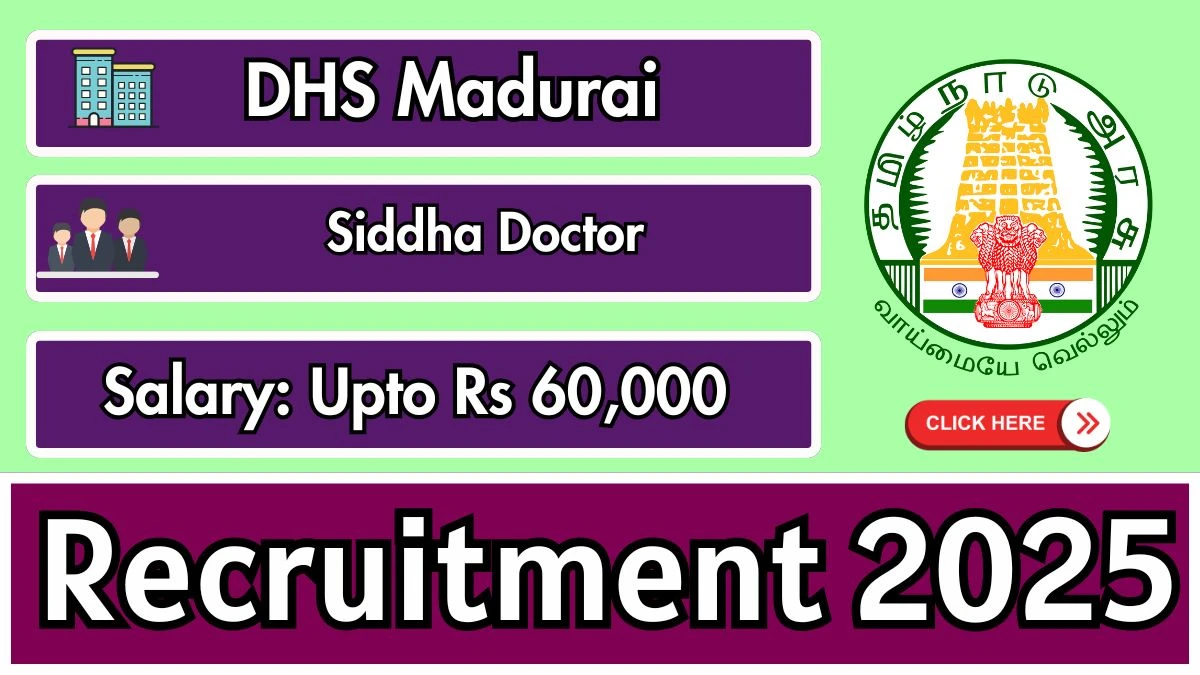 DHS Madurai Siddha Doctor Recruitment 2025 Vacancy Details |