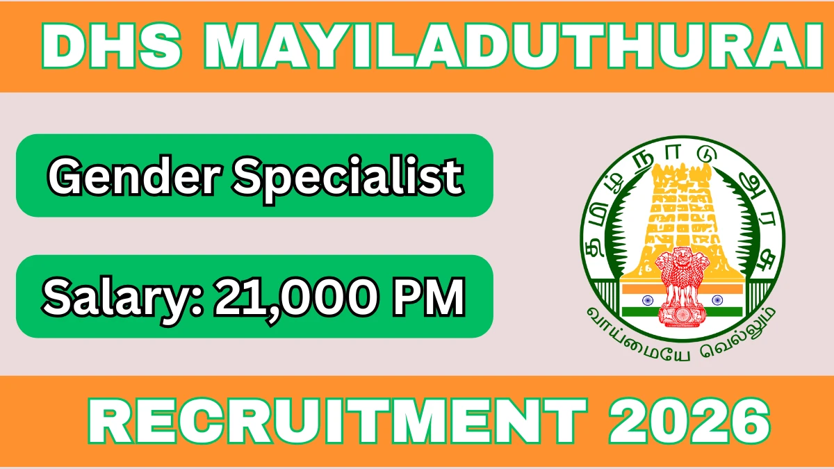 District Health Society Mayiladuthurai (DHS Mayiladuthurai) has released an official notification for the recruitment of 01 Gender Specialist Posts. Interested and eligible candidates can apply Offline through the official DHS Mayiladuthurai website. The last date to submit the application form is 20-01-2026. In this article, you’ll find the DHS Mayiladuthurai Gender Specialist Posts recruitment details, including eligibility criteria, age limit, salary structure, selection process, application steps, and direct links to the official notification and Offline application form.