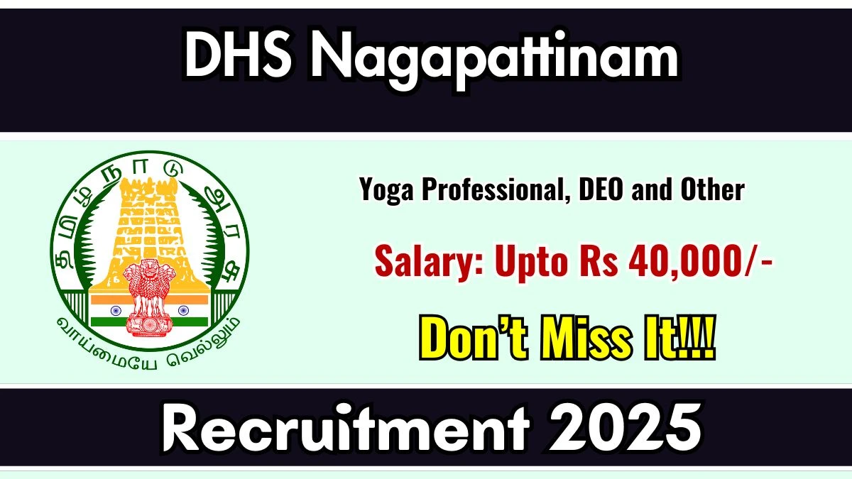 District Health Society Nagapattinam (DHS Nagapattinam) has released an official notification for the recruitment of 18 Yoga Professional, DEO and Other Posts. Interested and eligible candidates can apply Offline through the official DHS Nagapattinam website. The last date to submit the application form is 30-12-2025. In this article, you’ll find the DHS Nagapattinam Yoga Professional, DEO and Other Posts recruitment details, including eligibility criteria, age limit, salary structure, selection process, application steps, and direct links to the official notification and Offline application form.