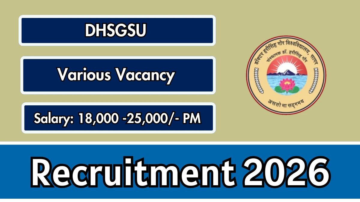 Dr Harisingh Gour Vishwavidyalaya (DHSGSU) Recruitment 2026: Dr Harisingh Gour Vishwavidyalaya has released the official notification for 3 Lab Technician, Field Investigator and More posts, inviting applications from eligible candidates. This recruitment provides an excellent opportunity for candidates seeking government jobs.