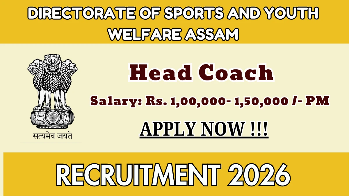 Directorate of Sports and Youth Welfare Assam has officially released a notification for the recruitment of 2 Head Coach Posts. This recruitment drive offers a great opportunity for candidates looking for government jobs. Interested and eligible candidates can apply by sending their resume and documents to the official email address. The email application must be submitted on or before 25-03-2026. Candidates are advised to send their applications well before the deadline. In this article, you will find complete details about Head Coach Recruitment 2026, including vacancy details, eligibility criteria, age limit, salary, selection process, email application steps, and important links.