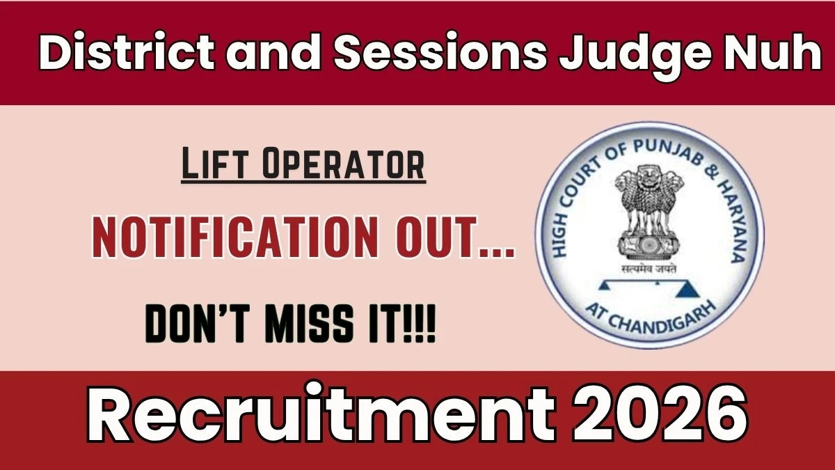 District and Sessions Judge, Nuh Lift Operator Notification 2026 has been released on the official website nuh.dcourts.gov.in. A total of 4 vacancies have been announced through the District and Sessions Judge, Nuh Lift Operator Recruitment 2026.