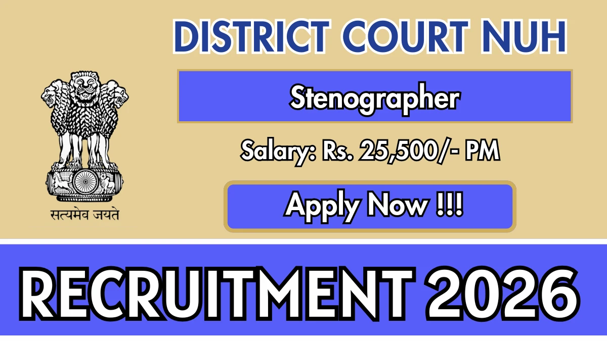District Court Nuh has released an official notification for the recruitment of 8 Stenographer Grade-III Posts. Interested and eligible candidates can apply Offline by sending the application form to the official address. The last date to submit the application is 24-03-2026.