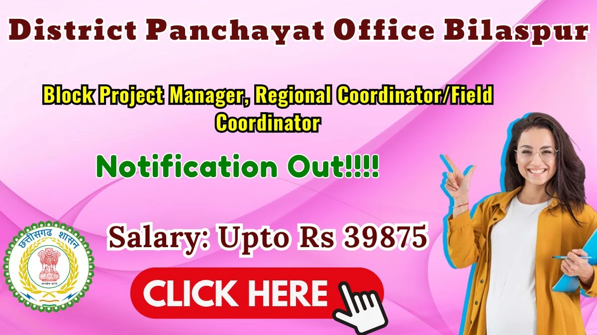 District Panchayat Office Bilaspur Recruitment 2026: District Panchayat Office Bilaspur has released the official notification for 7 Block Project Manager, Regional Coordinator/Field Coordinator posts, inviting applications from eligible candidates in Chhattisgarh. This recruitment provides an excellent opportunity for candidates seeking stable and well-paid government jobs.