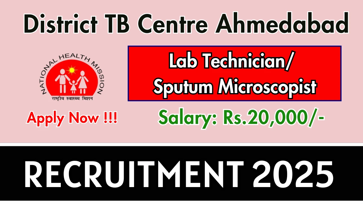 District TB Centre Ahmedabad has released an official notification for the recruitment of 02 Lab Technician/ Sputum Microscopist Posts. Interested and eligible candidates can apply Online through the official District TB Centre Ahmedabad website. The last date to submit the application form is 19-12-2025. In this article, you’ll find the District TB Centre Ahmedabad Lab Technician/ Sputum Microscopist Posts recruitment details, including eligibility criteria, age limit, salary structure, selection process, application steps, and direct links to the official notification and Online application form.