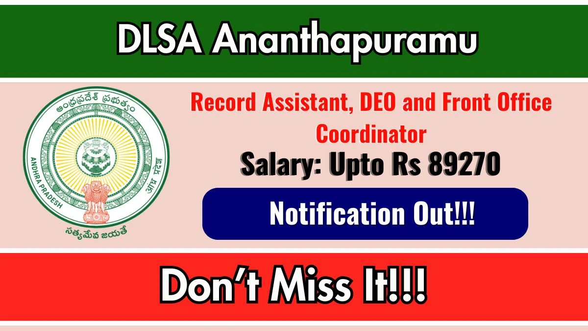 District Legal Services Authority Ananthapuramu (DLSA Ananthapuramu) has released an official notification for the recruitment of 03 Record Assistant, DEO and Front Office Coordinator Posts. Interested and eligible candidates can apply Offline through the official DLSA Ananthapuramu website. The last date to submit the application form is 27-01-2026. In this article, you’ll find the DLSA Ananthapuramu Record Assistant, DEO and Front Office Coordinator Posts recruitment details, including eligibility criteria, age limit, salary structure, selection process, application steps, and direct links to the official notification and Offline application form.