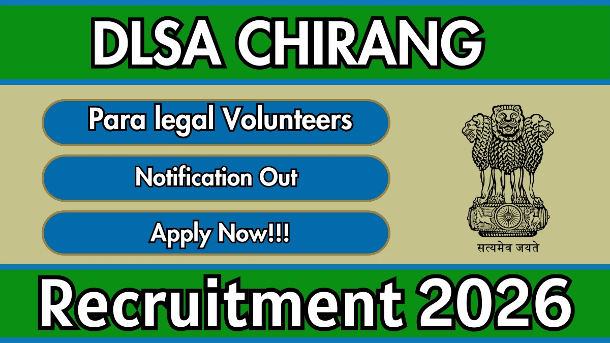District Legal Services Authority Chirang (DLSA Chirang) has released an official notification for the recruitment of Not Mentioned Para legal Volunteers Posts. Interested and eligible candidates can apply Offline through the official DLSA Chirang website. The last date to submit the application form is 27-02-2026. In this article, you’ll find the DLSA Chirang Para legal Volunteers Posts recruitment details, including eligibility criteria, age limit, salary structure, selection process, application steps, and direct links to the official notification and Offline application form.