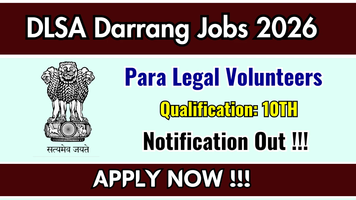 Don't Miss the Deadline! The last date to apply for DLSA Darrang Para Legal Volunteers (PLVs) Recruitment 2026 is 20/01/2026. Apply before it's too late!