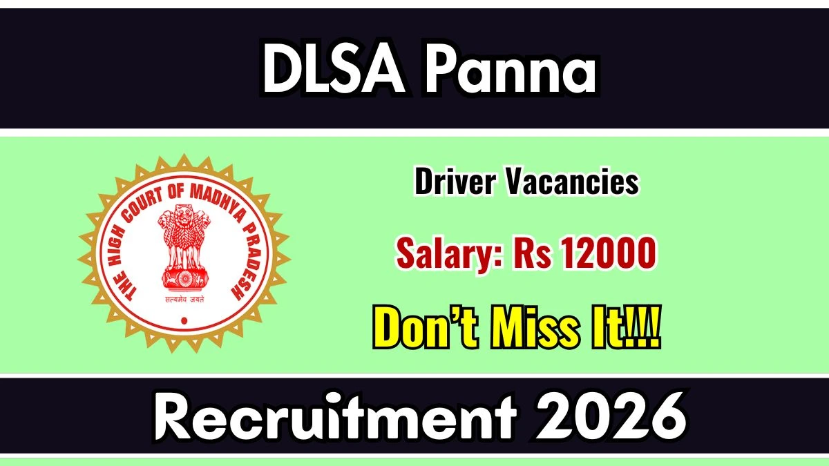 District Legal Services Authority Panna (DLSA Panna) has released an official notification for the recruitment of 1 Contract Driver (Vehicle Driver) Posts. Interested and eligible candidates can apply Offline by sending the application form to the official address. The last date to submit the application is 10-05-2026.