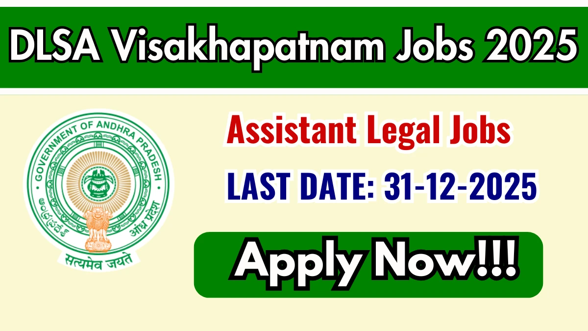 The District Legal Services Authority, Visakhapatnam (DLSA Visakhapatnam) has released an official notification for the recruitment of 01 Assistant Legal posts. Interested and eligible candidates can apply Offline through the official DLSA Visakhapatnam website. The last date to submit the application form is 31-12-2025.