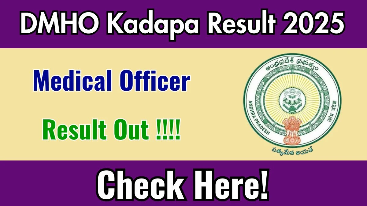 DMHO Kadapa Medical Officer Result 2025 Released: The District Medical & Health Office Kadapa (DMHO Kadapa) has officially declared the DMHO Kadapa Result 2025 for the Medical Officer, 13-10-2025. Candidates can now check their results online. To view their qualifying status, candidates must enter their roll number and date of birth on the official website kadapa.ap.gov.in.