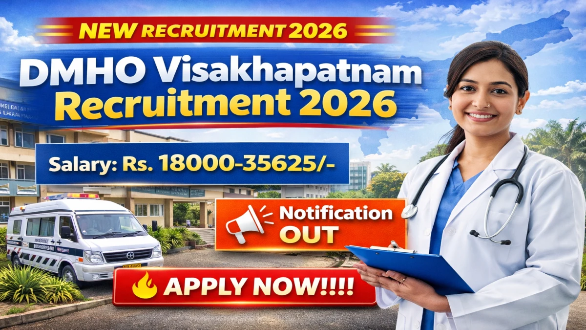 District Medical and Health Office Visakhapatnam (DMHO Visakhapatnam) Notification 2026 has been released on 18-02-2026 on the official website visakhapatnam.ap.gov.in. A total of 18 vacancies have been announced through the DMHO Visakhapatnam Recruitment 2026.