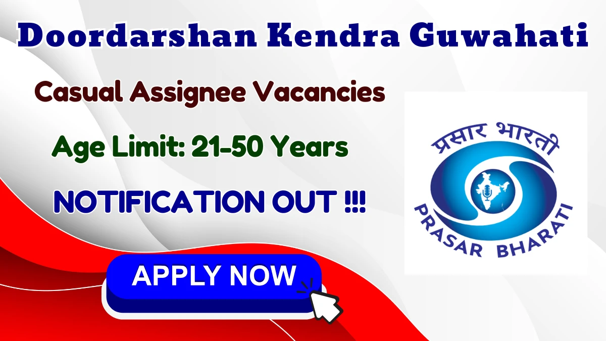 Prasar Bharati’s Doordarshan Kendra Guwahati has issued the Doordarshan Kendra Guwahati Casual Assignee Recruitment 2026 notification inviting applications for empanelment of casual assignees in seven categories - Resource Person, Video Assistant, Post‑Production Assistant (Video Editing), Website Editor/Social Media, Camera Assistant, CG Operator and Library/Archive Assistant - for DD Assam regional channel on a purely assignment‑basis engagement.