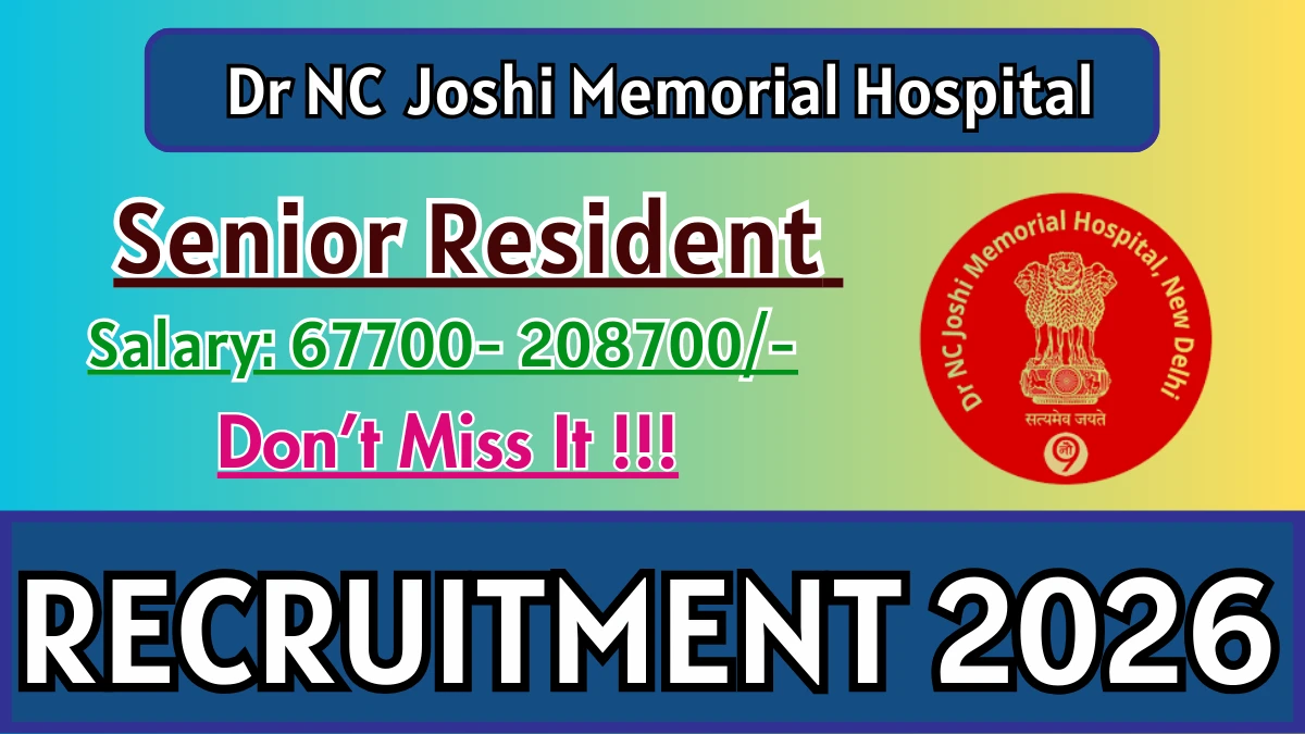 Dr NC Joshi Memorial Hospital Delhi Recruitment 2026 for 01 posts of Senior Resident. Candidates with Diploma, DNB, Any Post Graduate, MS/MD Can attend the walkin. The Walk-in on 06-02-2026. For detailed information please visit Dr NC Joshi Memorial Hospital official website, health.delhi.gov.in.