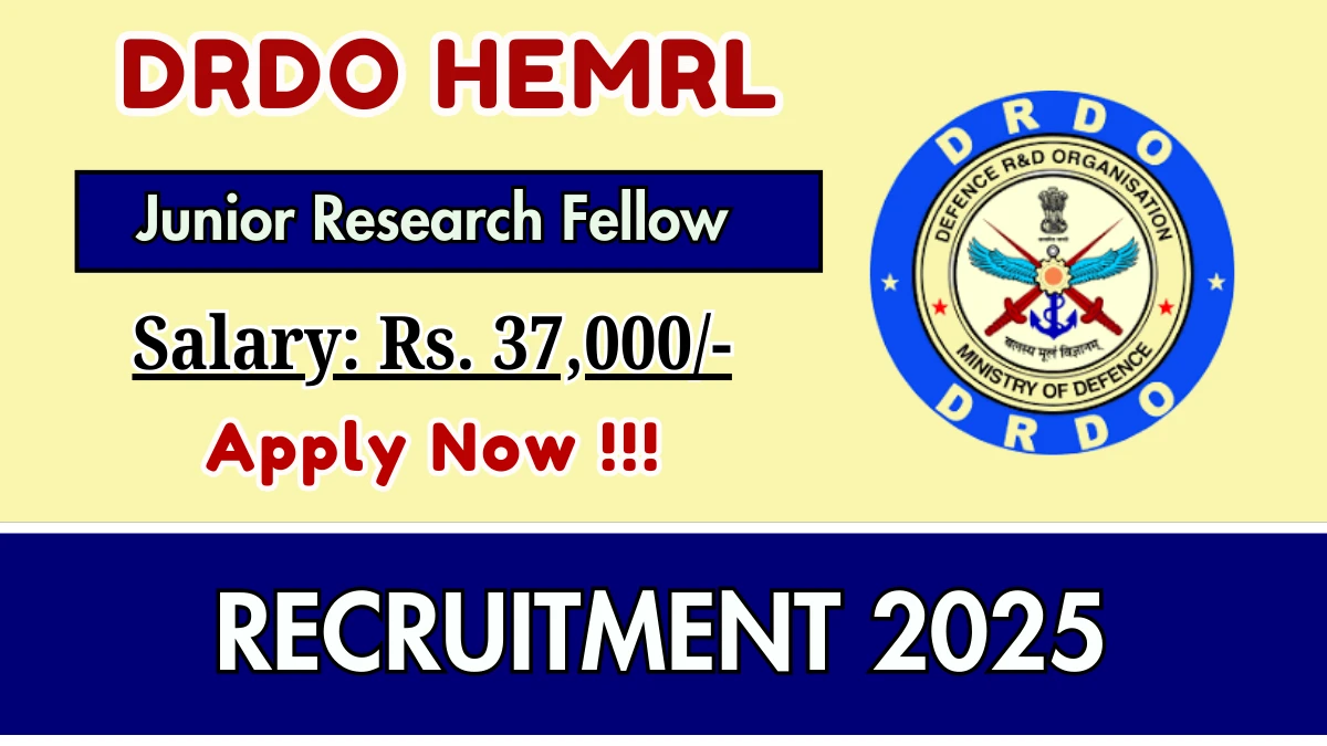 High Energy Materials Research Laboratory (DRDO HEMRL) has released an official notification for the recruitment of 02 Junior Research Fellow Posts. Interested and eligible candidates can apply Offline through the official DRDO HEMRL website. The last date to submit the application form is 06-01-2026. In this article, you’ll find the DRDO HEMRL Junior Research Fellow Posts recruitment details, including eligibility criteria, age limit, salary structure, selection process, application steps, and direct links to the official notification and Offline application form.