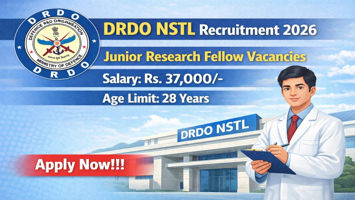 DRDO Naval Science And Technological Laboratory (DRDO NSTL) Recruitment 2026 for 07 posts of Junior Research Fellow. Candidates with B.Tech/B.E, M.E/M.Tech Can attend the walkin. The Walk-in on 26-02-2026. For detailed information please visit DRDO NSTL official website, https://www.drdo.gov.in.