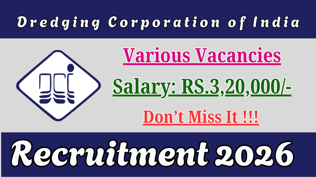 The Dredging Corporation of India Recruitment 2026 for posts of 01 Managing Director And Chief Executive Office. Candidates with B.Com, B.Sc, B.Tech/B.E Can Apply Online. The online application opens on 19-12-2025, and closes on 08-01-2026. The candidate shall apply online through Dredging Corporation of India website, dredge-india.com.