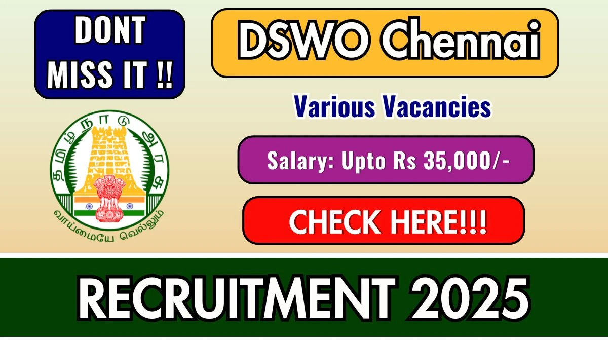 District Social Welfare Office Chennai (DSWO Chennai) has released an official notification for the recruitment of 65 Case Worker, Multi Purpose Helper and Other Posts. Interested and eligible candidates can apply Offline through the official DSWO Chennai website. The last date to submit the application form is 21-11-2025. In this article, you’ll find the DSWO Chennai Case Worker, Multi Purpose Helper and Other Posts recruitment details, including eligibility criteria, age limit, salary structure, selection process, application steps, and direct links to the official notification and Offline application form.