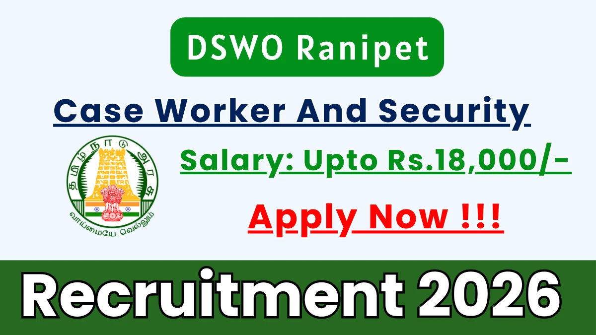 The District Social Welfare Office Ranipet (DSWO Ranipet) Recruitment 2026 for posts of 02 Case Worker And Security. Candidates with Any Bachelors Degree Can Apply Offline. The Offline application opens on 06-01-2026, and closes on 19-01-2026. The candidate shall apply Offline through DSWO Ranipet website, ranipet.nic.in.