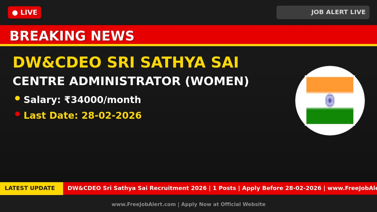 District Women & Child Welfare & Empowerment Officer (DW&CDEO Sri Sathya Sai) has officially released a notification for the recruitment of 1 Centre Administrator (Women) Posts. This recruitment drive offers a great opportunity for candidates looking for government jobs. Interested and eligible candidates can download the application form from the official website and submit it offline.