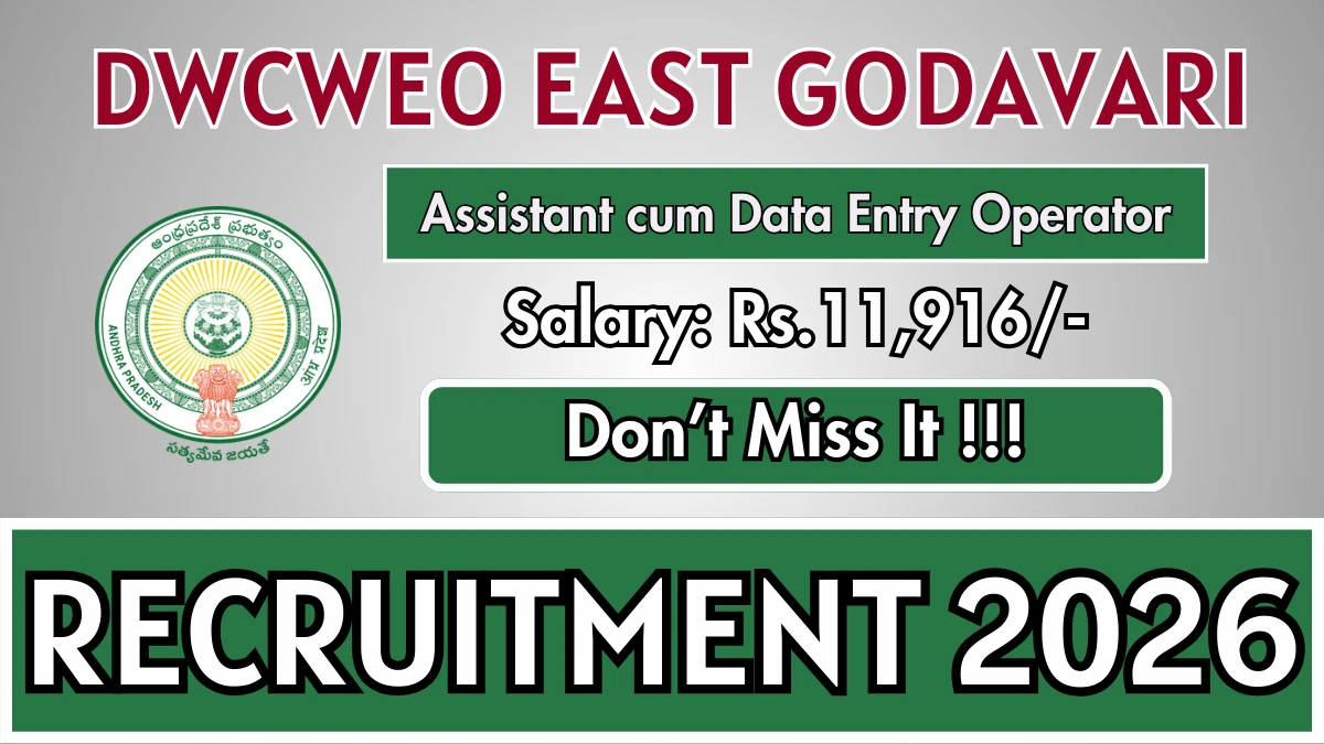 District Women and Child Welfare and Empowerment Office East Godavari (DWCWEO East Godavari) Recruitment 2026 for 1 post of Assistant cum Data Entry Operator. Candidates with Diploma, 12TH Can Apply Offline. The last date to apply offline is 05-03-2026. The candidate shall apply offline through DWCWEO East Godavari official website.