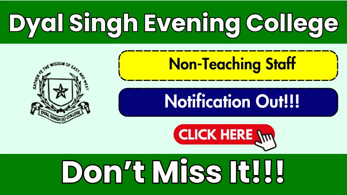 Dyal Singh Evening College has released an official notification for the recruitment of 7 Non-Teaching Staff Posts. Interested and eligible candidates can apply Online through the official Dyal Singh Evening College website. The last date to submit the application form is 21-03-2026.