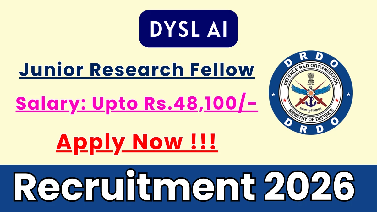 DRDO Young Scientist Laboratory Artificial Intelligence (DYSL AI) has released an official notification for the recruitment of 02 Junior Research Fellow Posts. Interested and eligible candidates can apply Offline through the official DYSL AI website. The last date to submit the application form is 22-01-2026. In this article, you’ll find the DYSL AI Junior Research Fellow Posts recruitment details, including eligibility criteria, age limit, salary structure, selection process, application steps, and direct links to the official notification and Offline application form.