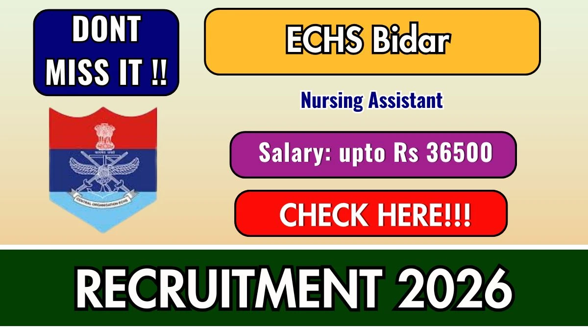 Ex-Servicemen Contributory Health Scheme Bidar (ECHS Bidar) has released an official notification for the recruitment of 1 Nursing Assistant Posts. Interested and eligible candidates can apply Offline by sending the application form to the official address. The last date to submit the application is 07-03-2026.